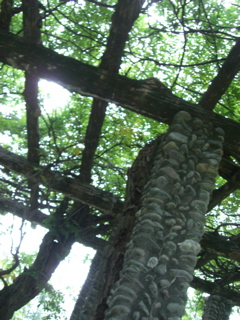 Near the Shimoyamaguchi citizen's forest, I came upon this Shinto shrine. If I remember the first Kanji right, it was Ikimono Jinja.